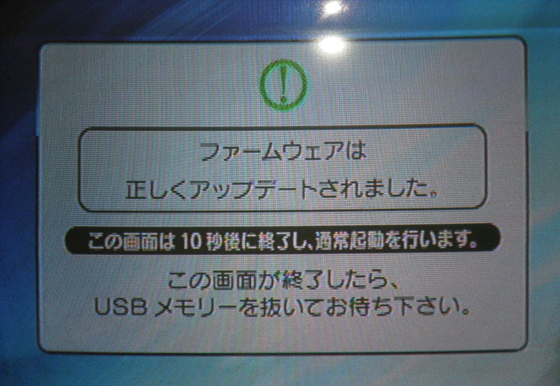 8.前面LEDが青に変わったら、USBメモリを抜き、電源を抜く